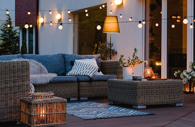 Twinkle lights make any space magical. Even a few touches of outdoor lighting extends the use of your patio into the evening hours. You can install string lights, lanterns, or even solar lights. If you’re on a tight budget, consider using battery-operated lights as these will be the easiest on your wallet.